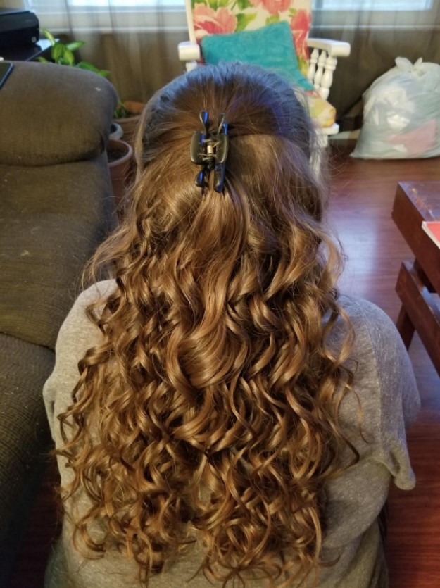 I was able to get a few strands in the curler, and they came out with some cute spiral curls. I wish I had been able to get closer to my scalp, but that was impossible. When you change sides, you have to flip the curler upside down for the curls to go in the opposite direction. If your hair is a bit wild, and you are not great at doing precision tasks in the mirror that you have to do backward, you may the same problems with this curler as I did.