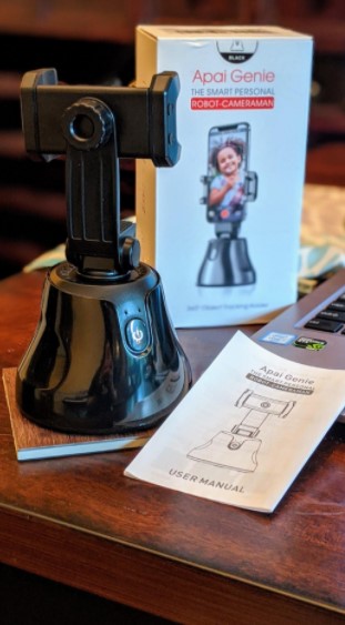 This is basically a selfie stick/tripod hybrid phone mount. This device has come in very handy for taking pictures and videos both indoors and outdoors, and has easily replaceable batteries. It holds your phone and allows for steady video to be taken. The device uses object tracking to follow, ensuring uninterrupted video is taken. It’s easy to set up and works as expected.